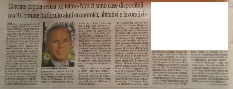 << L'assegnazione di un alloggio di edilizia residenziale pubblica, sia di proprietà comunale che di Aler, avviene sulla base di procedure e regolamenti, che questa amministrazione rispetta per garantire trasparenza e per tutelare i diritti di ogni cittadino. Per accedere a un alloggio in affitto ogni anno il Comune di Rho apre un bando di concorso da Luglio a Dicembre, in modo da formare una graduatoria sulla base di requisiti definiti. Si conferma che al momento non ci sono alloggi disponibili. Occorrerà infatti aspettare le case di via Mazzo e Lucernate, che con i 140 nuovi appartamenti permetteranno di rispondere alle esigenze di altrettante famiglie. Alcuni alloggi possono sembrare liberi, ma sono non agibili perchè spesso al termine del periodo di locazione sono lasciati in pessime condizioni e necessitano di lavori di manutenzione.Ricordo infine che i Servizi Sociali del Comune hanno già concretizzato degli interventi economici, abitativi e lavorativi a favore delle famiglie per un accompagnamento alla realizzazione dell'autonomia famigliare>>